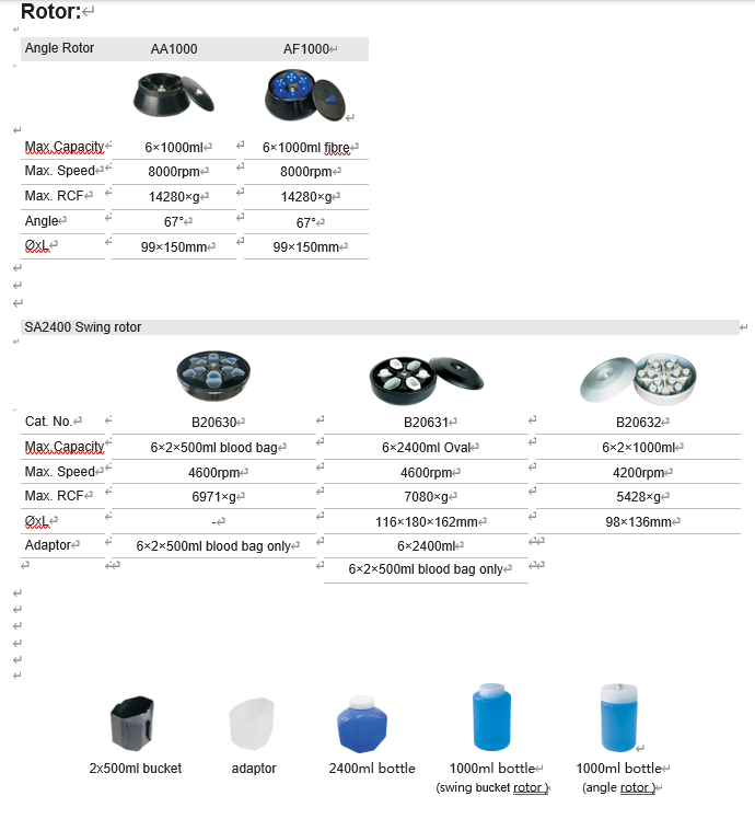 | Max. Capacity | 6x2400ml /18x400ml blood bag | ||